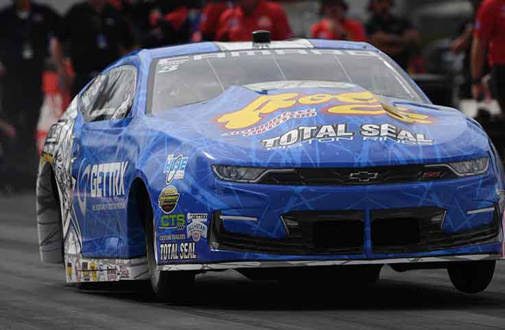 Dallas Glenn bagged an early win in Pomona, and he’s matched Enders with a 12-4 record in elimination rounds this season, which is why he’s in third place, just 26 points behind teammate Anderson and one point behind Enders. Glenn’s RAD Torque Systems Camaro is quick enough to qualify No. 1, as he did in Pomona, and he’s also a bandit on the Tree with 10 reaction times of .027 or quicker in 16 rounds.