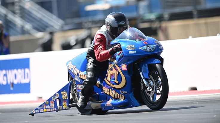 “When I went to Chicago, I’d been off a [Pro Stock] bike for 18 years, and part of me thought I didn’t have it anymore, but I surprised myself a little bit,” said Scali. “I was within 50-rpm on all my shift points and made some straight runs and event had a decent .028 light. A part of me wishes I didn’t still have it because I could save a few dollars, I’m retired now and I really want to do this.”