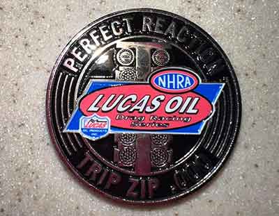 Perfect .000 reaction times are rare, even among NHRA’s many gifted Lucas Oil Drag Racing Series sportsman competitors, but those who manage a “trip zip” light will have an added bonus to remember their achievements as NHRA has introduced a special coin to commemorate the occasion. In order to win a coin, a racer must have a .000 reaction time on a winning run during eliminations. It didn’t take long for the first coin to be handed out as former world champ Ray Miller III hit the number in his round two win over David Morris.