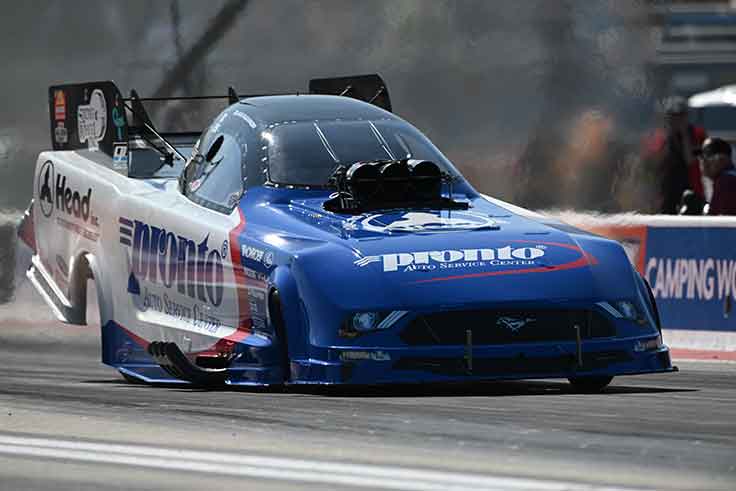 It was tough sledding for the Funny Car teams as crew chiefs struggled to adjust to the warm temperatures. One driver who seemed to solve the equation is Blake Alexander, who wheeled Jim Head’s Pronto Ford to a 4.058 to lead the pack and earn three qualifying bonus points.