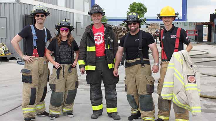 “We want to thank Romeoville Fire Department and the Romeoville Fire Academy, along with Joliet Fire Department for supplying us with the equipment and facilities to host the event,” said King. “Everybody was excited, and it was great to have Cody, Buddy, Travis and Krista get an eye-opening experience to realize the physicality of being firefighters and how heavy the equipment is and a few of the things that I do on the job away from the track. They had fun, cutting cars, dragging hoses, chopping, dragging manikins, climbing ladders, and various tests that firefighters do every day and their job duties.”