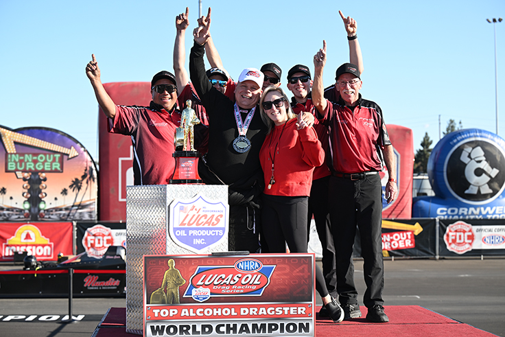 A consistent Top 10 finisher for the bulk of his career, including four third place finishes and four runner-up finishes, Shawn Cowie has now earned the title of NHRA Top Alcohol Dragster world champion following his round one win over Mike Coughlin. Cowie put an exclamation point on his first title with a strong 5.18 run after Coughlin got loose and made contact with the top end timing blocks.