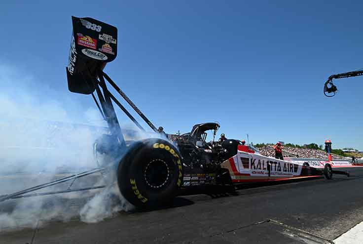 On Friday, Doug Kalitta, Austin Prock, and Erica Enders took the top spots in Top Fuel, Funny Car, and Pro Stock, and each appears safe at the top since Saturday’s forecast is for warmer temperatures.