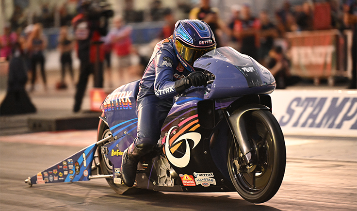 Hector Arana Jr. and his GETTRX Buell record an impressive 6.773 for a pair of bonus marks. Gaige Herrera and the Vance & Hines RevZilla Mission Foods Suzuki make a statement here with a 6.749 at a big speed of 202.52 mph to claim three more bonus marks.