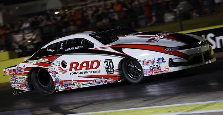 “We’re definitely geting the car figured out for raceday here,” said Glenn. “It’s made two solid laps, and I’ve been decent at the tree on both of them — but we’ve got four really tough ones, potentially. I think it falls out that I’m going to have T.J. [Troy Coughlin Jr.] first round, and I guarantee that’s going to be a tough one there. We have everybody from RAD Torque Systems here, so there are a lot of white shirts on the starting line, and I really want to get them a cowboy hat tomorrow.”