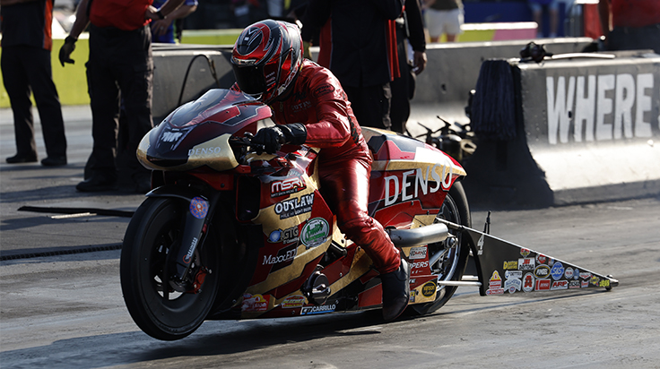 Matt Smith scored top honors for the session with the quickest pass of the round, a 6.756 at 201.77 aboard his Denso Buell. Hector Arana Jr. and his GETTRX Buell scooped up a pair of extra marks as well with his 6.784, 199.62. Gaige Herrera remained the No. 1 qualifier and earned a point with his 6.803 on the RevZilla Mission Foods Suzuki.