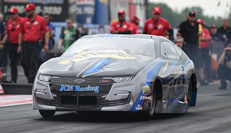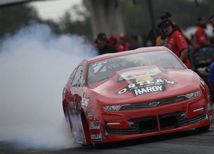 Justin Schriefer opens on a solo, still looking to better the 4.00 career best that famously anchored the quickest field in history here in 2019. The team has been having fuel-delivery problems the last few races and something’s not right here either as he’s off the gas after about 100 feet. Word is it’s a broken throttle linkage.