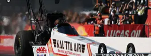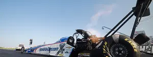 A pair of past Indy Funny Car winners in Ron Capps and Jack Beckman saddle up next and Beckman blazes John Force's machine to a strong 3.895, the best run of a hot session. After a pair of three-second passes, Capps can't make a full pull and coasts to a 6.91.