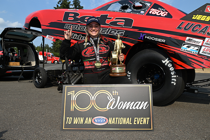 Maddi Gordon’s Top Alcohol Funny Car victory at the NHRA Northwest Nationals made her the 100th different female racer to hoist an NHRA national event Wally, an incredible milestone even for a sport that prides itself on diversity.
