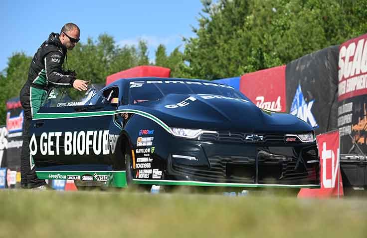 Count Deric Kramer as one of the drivers who could use a get healthy weekend and so far, he’s off to a good start after driving his GetBioFuel Camaro to a win over Eric Latino. Kramer, looking to break into the Top 10, left first by six hundredths, and extended the advantage to the finish line with a 6.593 to 6.615 victory. Kramer previously won just two rounds this season, both of them in Pomona.