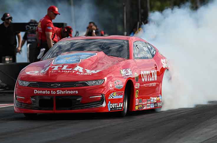 Will Jerry Don Tucker become NHRA’s next first-time pro winner? That is a distinct possibility as the second year Pro Stock driver contoinues to make steady progress including his third semifinal of the season. Tucker drove his Outlaw Mile-Hi Light Beer Camaro to a 6.611 in hid quarterfinal win against Chris McGaha, who shook the tires as soon as he dumped the clutch pedal.