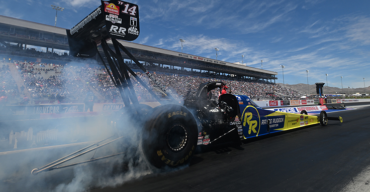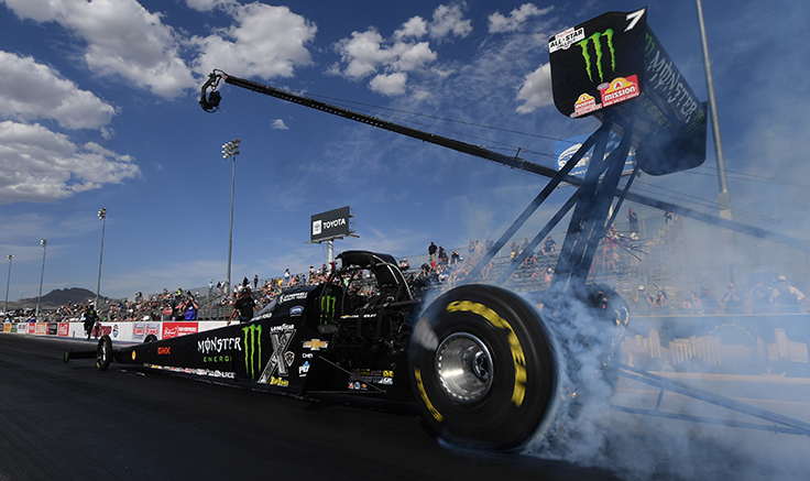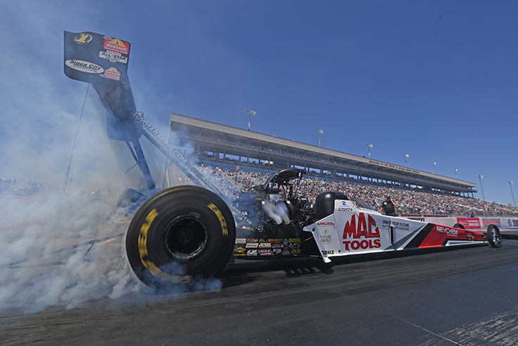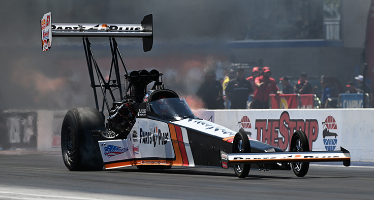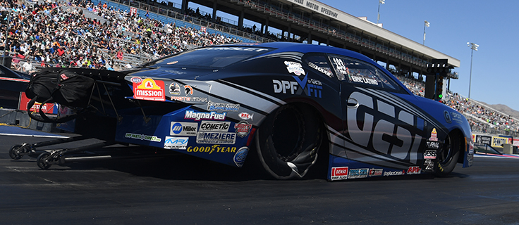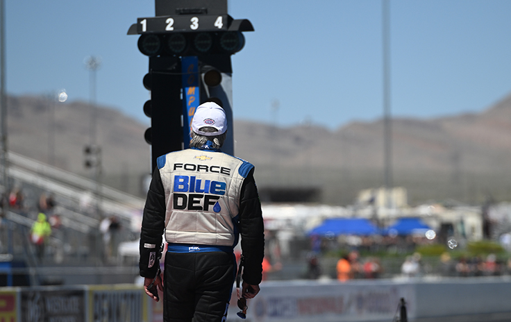 A pair of nearly perfect reaction times by teammates Erica Enders and Jeg Coughlin Jr. helped each reach the final quad. Enders turned on the win light with a 6.600 while Coughlin, the winner of the inaugural Las Vegas event was close behind at a 6.605. Greg Anderson ran a 6.602, but couldn’t match Enders and Coughlin on the starting line. With the win, Enders took over the championship lead while Coughlin is fourth.