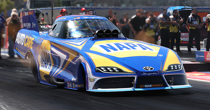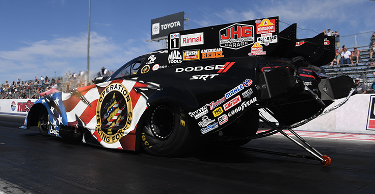 Semifinal Funny Car matchups(in lane choice order): Austin Prock vs. Bob Tasca III vs. Alexis DeJoria vs. Chad Green; Matt Hagan vs. Jason Rupert vs. Ron Capps vs. J.R. Todd