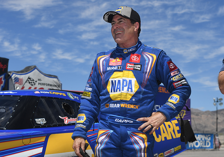 Ron Capps and Matt Hagan run 3.93 to advance to the final round in their quad, finishing ahead of J.R. Todd's 3.95 and Jason Rupert's 4.05. Capps has 4-Wide wins in both Las Vegas and Charlotte in the past.