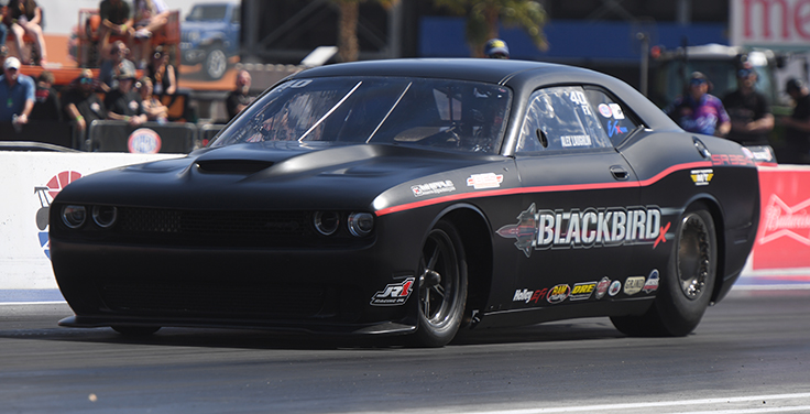 The opening round of the Holley EFI Factory X class featured a significant as low qualifier Aaron Stanfield spun the tires in his Janac Bros. Camaro and fell to Alex Laughlin, who overcame a troubled qualifying performance to rebound with a 7.248 in Geoff Turk’s Blackbird X Dodge Challenger.