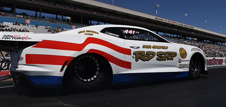 Greg Stanfield debuted the first Factory X car last year in Norwalk and now he’s been crowned the first winner in the Holley EFI Factory X class at the 4-Wide Nationals in Las Vegas. Stanfield drove his Rod Shop Camaro to a 7.121 in the final to stop Alex Laughlin, who ran 7.370 in Geoff Turk’s Blackbird X Dodge Challenger.