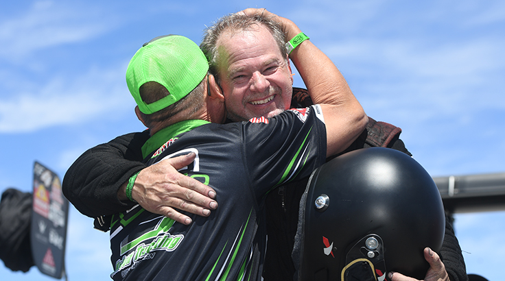 “This is just fantastic. It’s been quite a ride and being in the winner’s circle here in Las Vegas, nothing beats that. Team Elite welcomed me back with open arms and this SCAG car rocked it all weekend. In the final, they had it on kill. The front end was up, and I started banging gears and it felt really good right up until I saw that blinking [win] light.”
