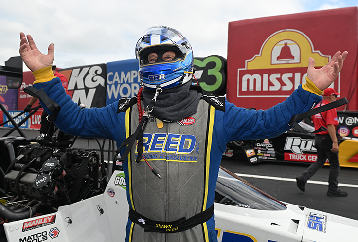 One single ten-thousandths-of-a-second separate Shawn Reed’s Reed Trucking dragster and Tony Stewart’s Rush Trucking Center at the final stripe, and the nod goes to Reed.