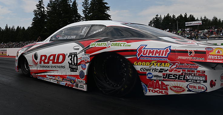 It hasn't been .00 reaction times that spawned his nickname "Double-Oh Dallas," but Dallas Glenn is in the final round after three straight holeshot wins after beating defending event champ Troy Coughlin Jr., 6.556 to 6.552. Glenn grew up just one exit down Highway 18 from Pacific Raceways, so you have to know a win here would be huge.
