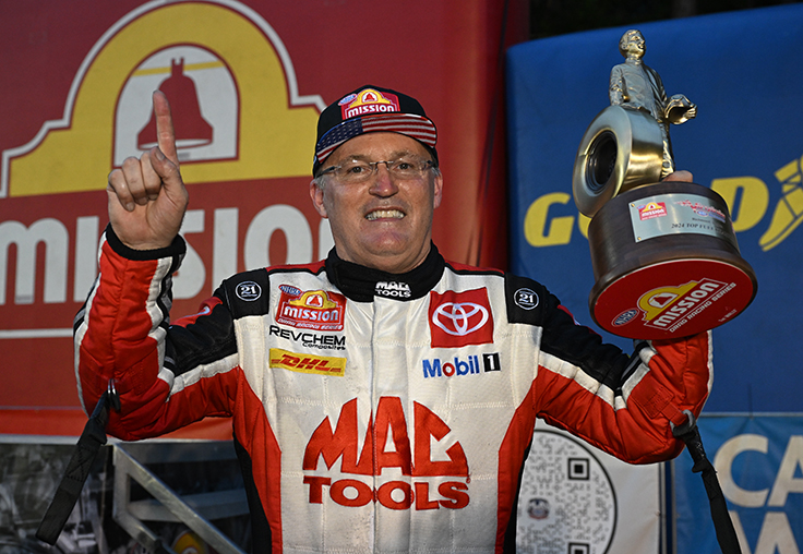 After beginning the season with a trio of second-round losses, Kalitta and the Alan Johnson-led Mac Tools team won the NHRA 4-Wide Nationals in Las Vegas and reached the final of the Charlotte four-wide event. After a surprising first-round exit in Chicago, he’s been to four straight final rounds, with wins in Epping and Richmond and runner-ups in Bristol and Norwalk. Kalitta, who boasts an impressive 22-7 round record, also won his first Mission #2Fast2Tasty NHRA Challenge title in Norwalk.