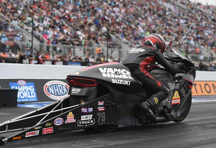 The favorite: When you win 11 races in a season, as Gaige Herrera did last year, there is no way you’re not going to start the year as the top ranked rider in the Pro Stock Motorcycle class. Herrera had the best bike in the class and made almost zero mistakes on his way to one of the most dominant seasons in NHRA history. It probably isn’t reasonable to expect another double-digit win total, but the Vance & Hines rider is a big favorite to defend his 2023 Gainesville title.
