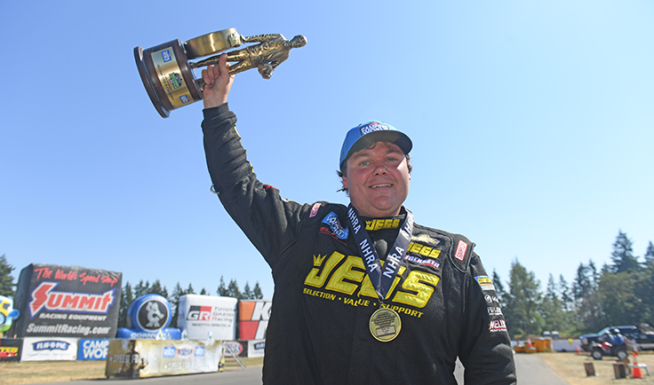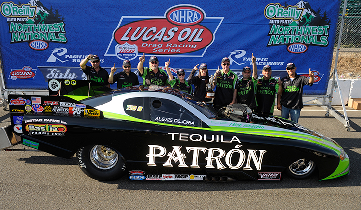 Alexis DeJoria’s first win in a Funny Car came at the 2011 NHRA Northwest Nationals while racing in the Top Alcohol Funny Car category. It wasn’t her first win over — she’d won in Super Comp at the Pacific SPORTSnationals back in 2006 — but it was her first win under ‘glass. DeJoria’s crew chief, Del Worsham, by the way, still owns the track E.T. record of 3.832 seconds, recorded at the 2016 event while he was driving the DHL Funny car for Kalitta Motorsports.