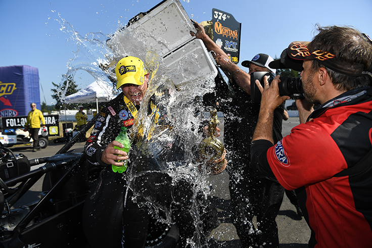 Funny Car points leader Austin Prock scored his first career win in Top Fuel at the 2019 event and could join the above trio as a dual-fuel winner in Seattle. Prock's win that year was shared by his team boss, John Force, whose win was the milestone 105th of his career.