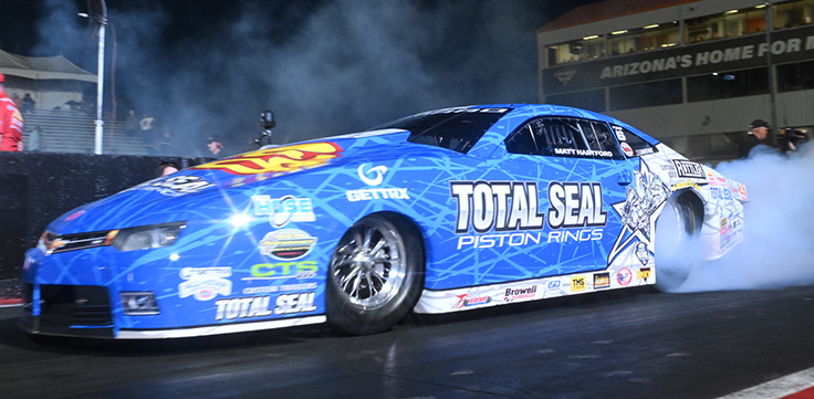 Racing in front of plenty of family and friends, as well as a sold-out crowd, local native Matt Hartford easily held onto the No. 1 spot in his Total Seal Chevrolet Camaro with Friday’s strong run of 6.509 at 208.20. Hartford picked up his fifth career No. 1 qualifier, setting the tone for what he hopes is a meaningful Sunday and a win at his home track. He opens eliminations against Brandon Foster.