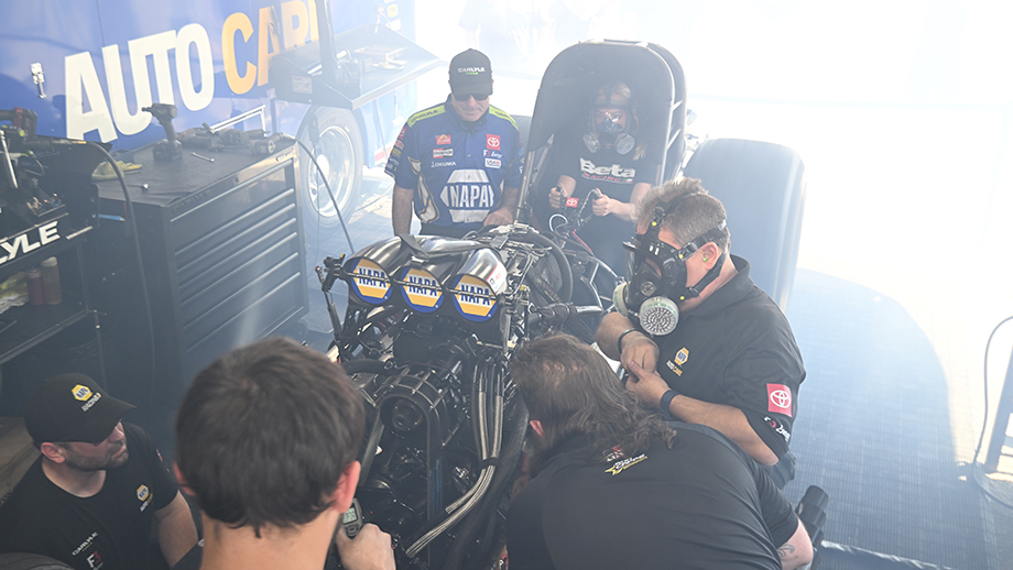 A day after being introduced to the media as Ron Capps Motorsports’ Top Fuel driver of the future, Maddi Gordon warmed up Capps' NAPA Funny Car in the pits at The Strip at Las Vegas Motor Speedway, the third-generation Top Alcohol Funny Car racer’s first real taste of nitro.