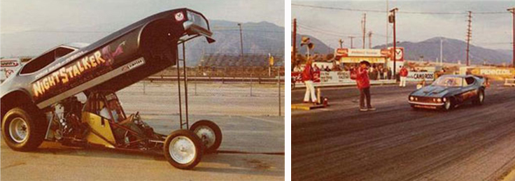 “I knew nothing about drag racing, so he took me to Orange County [Int’l Raceway], and it looked pretty exciting,” she recalled. “I think it was the Fox Hunt [race], and there were bands playing, and at the end of the race, everyone ran out onto the track. There were streakers. It was pretty bizarre and wild. He told me that he always thought he’d want to have a Funny Car one day. It all seemed so exciting, but I didn’t know how good he’d be or how it would work … and at the start, actually, it didn’t work very well. I remember the first race he took me to when he was racing, his car caught on fire.”