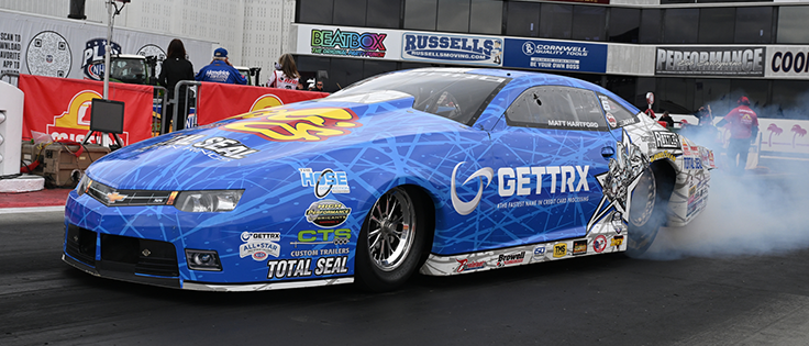 Matt Hartford, the No. 1 qualifier a week ago a the NHRA Arizona Nationals, pushed his way back to No. 1 with a 6.490 to beat Dallas Glenn’s 6.519 to make it to the Mission Challenge final. Harford’s only win in the Mission Challenge came at this event two years ago.