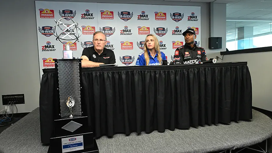 The three milestone winners took part in a media opportunity prior to Friday’s qualifying at zMAX Dragway, each expressing their desire to lay their hands on the special trophy Sunday night.