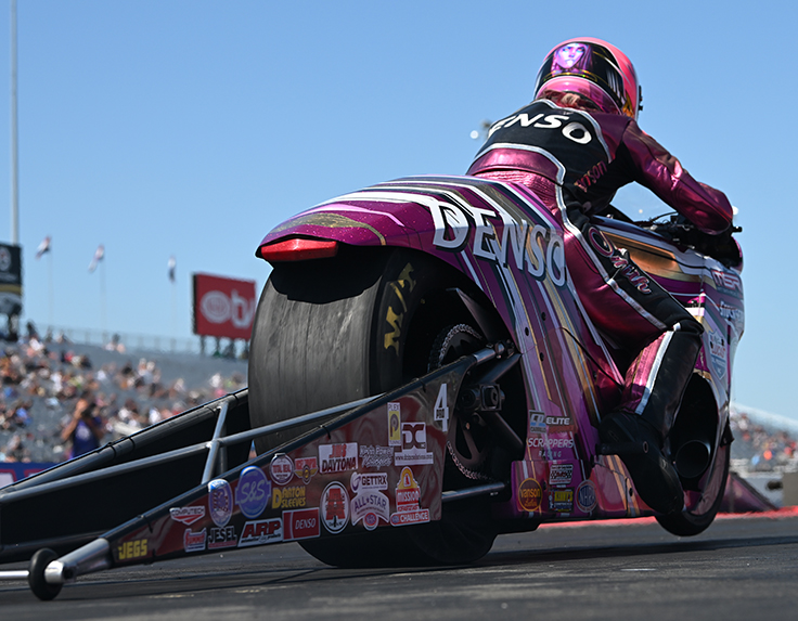 Davis will face a tough hurdle in the final when he races against two-time world champ Gaige Herrera, who made it to the final after Matt Smith red-lighted by .003-second. Had Smith not fouled, it would have been a great race as both bikes ran within a thousandth of each other. Davis will have lane choice in his first career final.
