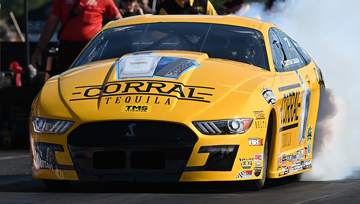 Matt Hartford had a slight elapsed time advantage based on round one times over Cristian Cuadra, who qualified fourth in the tough Indy field. At the drop of the clutch, it was Hartford with a .006 and a reaction-time advantage, but both cars shook the tires, causing the drivers to momentarily lift. Hartford recovered first and ran 6.995 to hold off Cuadra’s 7.344.