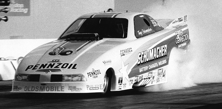 It all began humbly enough for the second-generation nitro driver, whose late father, Don, was a pioneer of multi-car teams back in the 1970s. Tony drove jets cars and in 1985 wheeled an Alcohol Funny Car sponsored by his father’s company, Schumacher Electric. After blowing the body off of the Funny Car at a Division 3 points meet in Martin, Mich., Tony called NHRA’s Steve Gobbs looking for advice on his next steps.