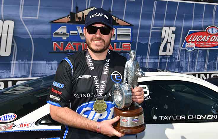 Comp racer Taylor Chomiski nearly duplicated Whitfield’s feat with a pair of wins in Las Vegas. Chomiski won the 4-Wide Nationals and the first race of the Lucas Oil Series doubleheader before a round-two loss in the second event. He’s currently ranked No. 2 in the Comp standings.