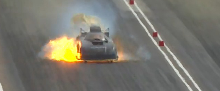 DeJoria’s run was a costly one in many ways, as her Bandero Toyota lit up big time just past the lights.