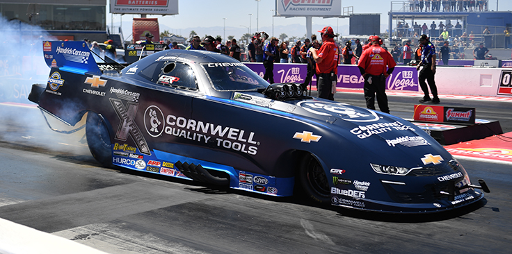 Ron Capps, who’s had an up and down last three races — a big explosion and crash in Phoenix, a Mission Challenge win in Pomona, and barely qualifying for the field here — also has fond memories of Las Vegas. It was at this event three years ago that Capps earned his first event win as a team owner.