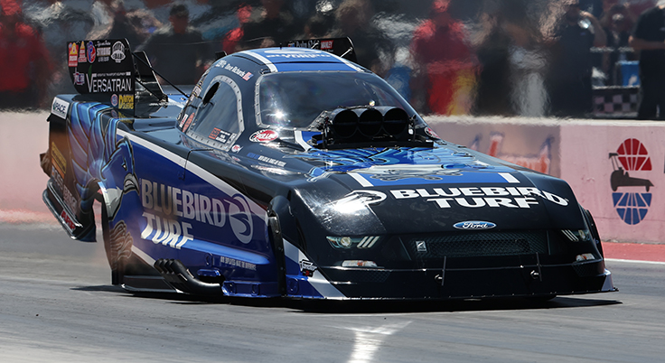 Matt Hagan will get a chance to collect his fourth four-wide win and become Funny Car’s most successful racer in the format after winning his quad with a 4.126 just ahead of Paul Lee’s 4.140; J.R. Todd and Dan Wilkerson were sent to the trailer.