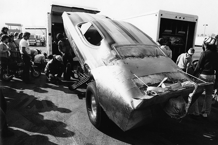 Hanna continued to race nitro Funny cars up through 1981 when a devastating break-in at his shop just about put him out of the business. That and the continuing rising cost of fielding a nitro car led him and his family team, consisting of wife Ellen and sons Rich and Scott, to switch to jet Funny Cars.