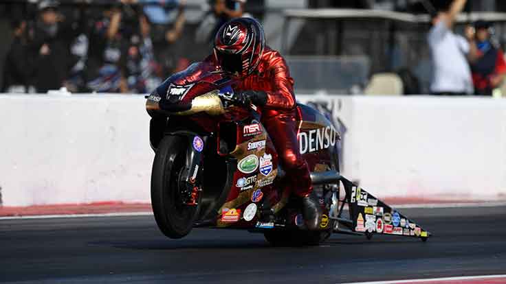 There wasn’t much movement in the final qualifying session for Pro Stock Motorcycles although Chris Bostick got back on track following last week’s run-in with the wall in Seattle. Bostick ran a 6.966 to cement his place in the field.