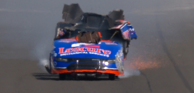 Daniel Wilkerson and the SCAG Power Equipment team went to a back-up car after last night’s massive explosion and appeared to not miss a step with a 3.908 at over 323-mph.