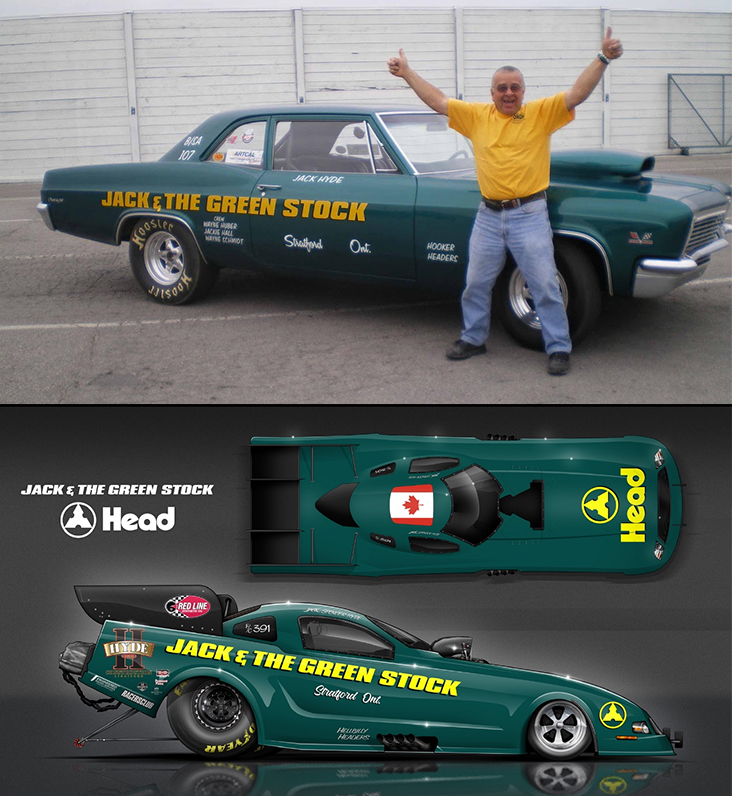 That makes this weekend a home race for Head, but also for Hyde, who grew up racing just outside of Toronto in Stratford, Ont. It means Hyde is bringing plenty of friends and family with him to Norwalk, as well as a special “Jack and the Green Stock” wrap on the Funny Car. It’s an ode to the green Stock eliminator car his grandfather’s cousin, Jack Hyde, drove almost 50 years ago.