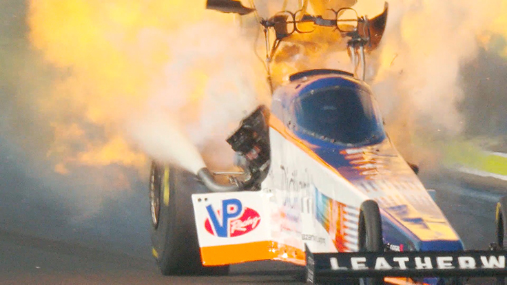 Alex Laughlin, in what is probably his last race subbing for Buddy Hull this season, left on Ron Capps by six-hundredths but couldn’t hold the lead after dropping a cylinder. Capps streaked to the win but paid the price with a blower backfire.