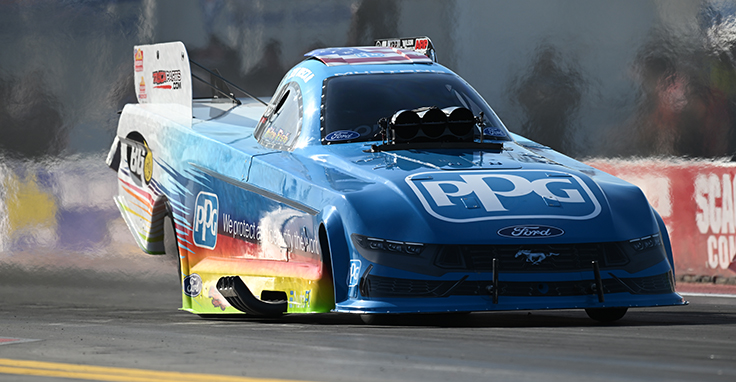 After having to complete a last-minute engine change and rolling to the line a little late, Chad Green and the Bond-Coat team lit the win light on a 3.92 to 3.98 count against Matt Hagan. It's Green's first final-round appearance since winning the NHRA Finals in 2023.