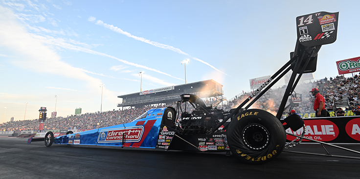 Tony Stewart, celebrating the one-year anniversary of his Top Fuel debut, kept his record against Brittany Force unblemished with his third straight career win over the two-time world champ. Stewart’s first of 17 round wins in his rookie year came against Force in Phoenix after losing in the opening stanza in Gainesville and Pomona last year.