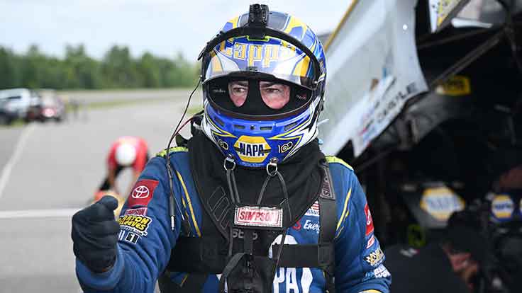 Hard to say who has been more consistent this weekend, Doug Kalitta or Funny Car finalist Austin Prock. The current leader, Prock is going to his 28th career final round after a 3.879 win against Chad Green, who smoked the tires early. Prock also used the opportunity to all-but clinch the regular season championship in Funny Car, and the six-figure bonus that goes with it.