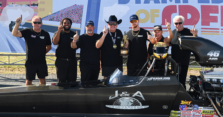The championship obviously came as a bit of a surprise from their season-starting plan. Taylor acknowledged the support of his wife, Patty, Jim and Annie Whiteley, David Nickens and Karenina Sidney, crewmember Fred North, Nickens Brothers Racing Engines, Mickey Thompson Tires, Weldon Pumps, JEGS, and Coan Engineering in his first championship season in 20 years.