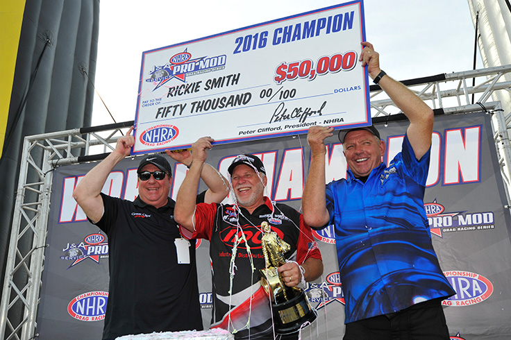 No. 2: Rickie Smith becomes the first three-time champ in NHRA Pro Mod history, 2016