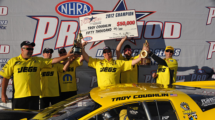 No one understood this concept better than Troy Coughlin and his tuner Steve Petty in 2012. Having performed well during the season with a runner-up in Englishtown and then a win in St. Louis, they were facing a two-round points deficit with four rounds left to earn points in Las Vegas. Understanding the seriousness of this situation, they did the only logical thing. They brought out a completely new car. The car had been quietly tested and showed promise, so the team agreed that it was their best shot.